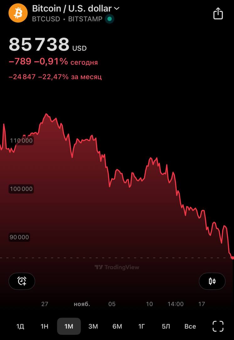 وبحلول الساعة 10:12 بتوقيت موسكو، انخفضت عملة "البيتكوين" بنسبة 8.5% متجهة صوب مستوى 85 ألف دولار، حيث سجلت 85519.89 دولار، بحسب منصات مختصة في متابعة التداولات في سوق العملات المشفرة.