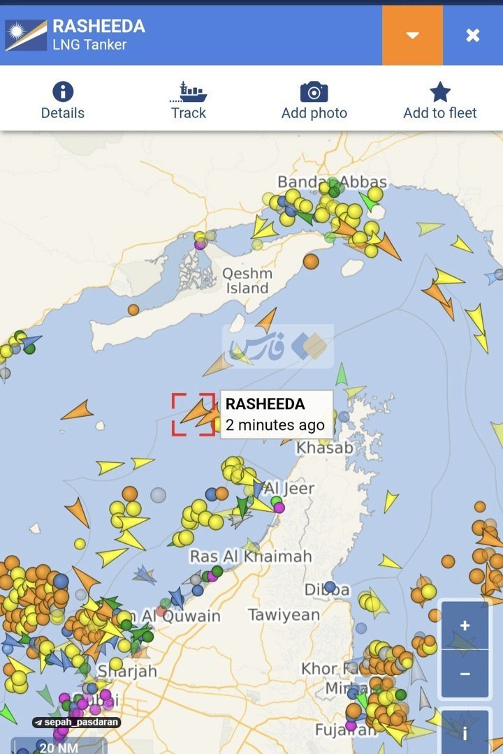 وقال الحرس الثوري إن السفينتين اللتين تحملان اسمي "رشيدة" و"الضعاين"، واللتين كانتا قد حملتا شحناتهما منذ بداية الحرب، عادتا الآن في مسار الغرب باتجاه سواحل الإمارات، وتخضعان لسيطرة شركة "قطر للطاقة".