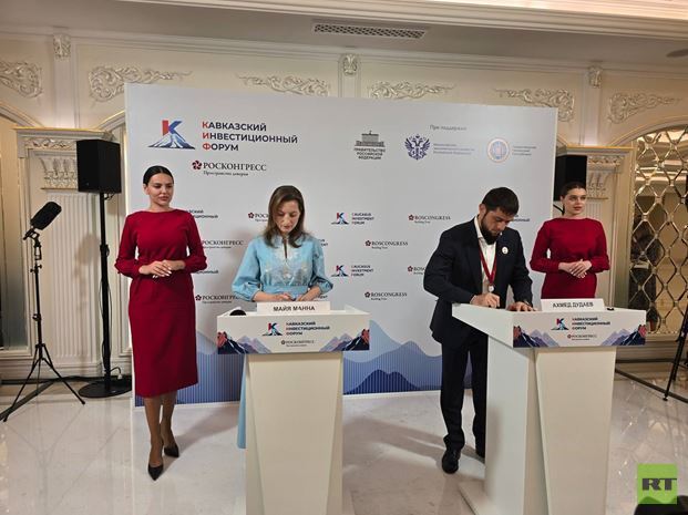 ووقع المذكرة مديرة RT العربية مايا مناّع ومساعد رئيس جمهورية الشيشان، وزير السياسة الوطنية والعلاقات الخارجية والصحافة والإعلام أحمد دوداييف، وذلك على هامش منتدى القوقاز الاستثماري، الذي يعد منصة موحدة لتعزيز الحوار المثمر بين الجهات الحكومية وقطاع الأعمال والمجتمع.