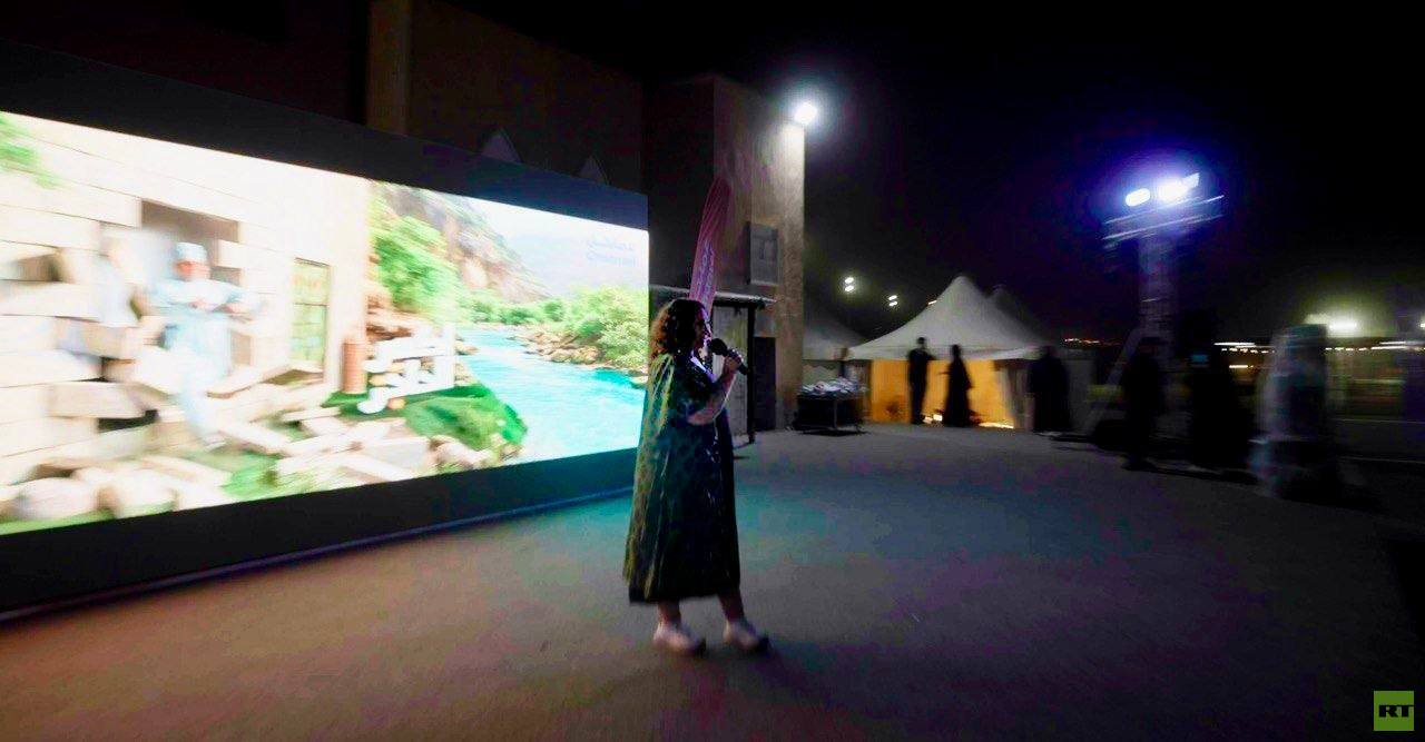 وألقت أنيسة غوردينا، معدة الفيلم ومديرة قسم البرامج في RT Arabic، كلمة ترحيبية للحضور في ساحة الحافة التي تحتضن العديد من الفعاليات الترفيهية والتراثية خلال فترة المهرجان، واستعرضت رحلة إعداد العمل الفني بدءا من فكرته ومرورا بمراحل تصويره بين عُمان وروسيا. وقد شهد العرض إقبالاً لافتا تجاوز 300 شخص من زوار المهرجان والمهتمين بالشأن الثقافي والتراثي الذين توافدوا من مختلف أنحاء الخليج العربي والعالم للاستمتاع بفعاليات الخريف.