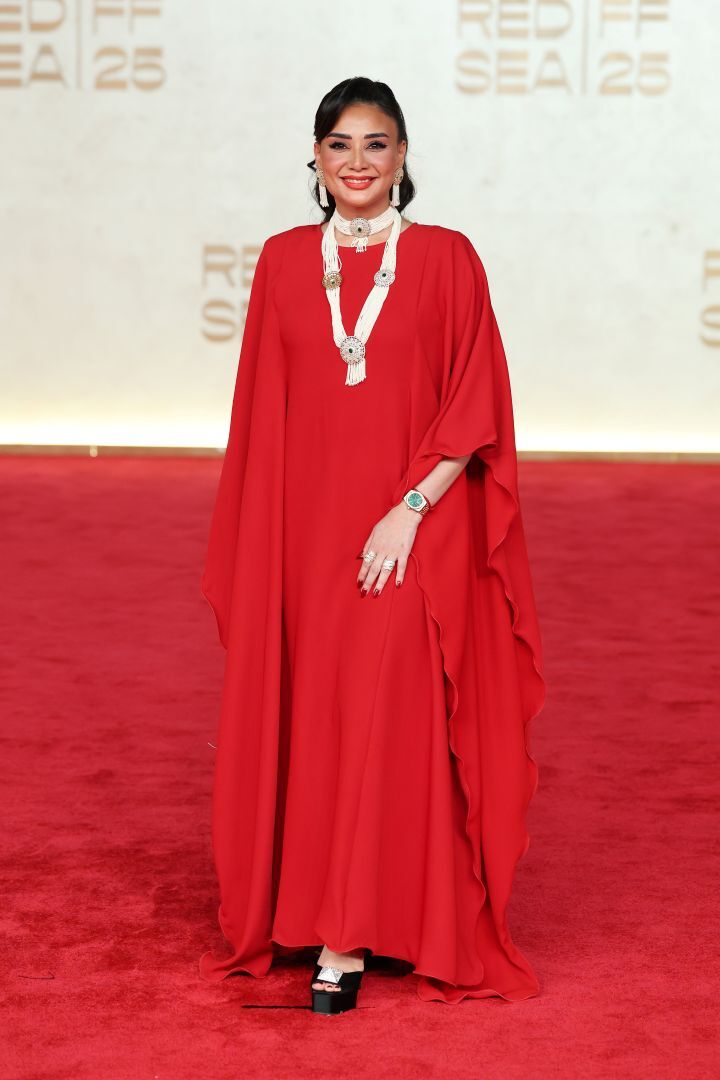 ومن السعودية، ارتدت أضوى فهد فستانا أزرق بتروليا بسيطا، وظهرت رؤى المدني بقفطان حريري أحمر. واختارت أسيل عمران تصميمًا بلون بيج وردي من نيكولا جبران، فيما كانت إلهام علي بفستان مخملي خمري من أنطوان القارح.