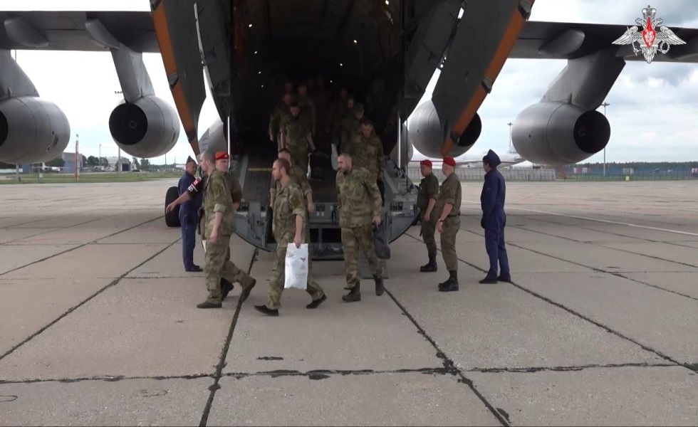 أقلت طائرة وزارة الدفاع الروسية عسكريين روس إلى موسكو بعد تحريرهم من الأسر بوساطة إنسانية من دولة الإمارات وسيجري تقديم العلاج والدعم لهم في المؤسسات الطبية لوزارة الدفاع الروسية.