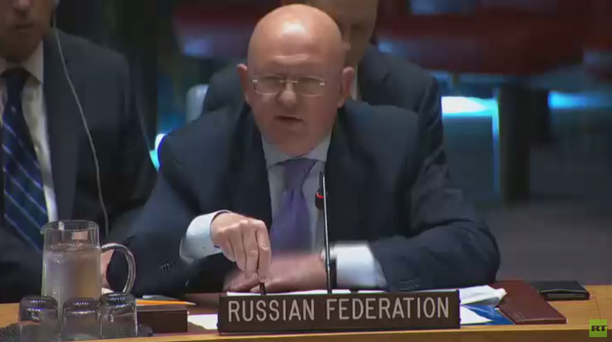 اتهم المندوب الروسي في مجلس الأمن فاسيلي نيبينزيا دول الغرب بالسعي للحفاظ على جيب إرهابي في إدلب شمال سوريا، لاستخدامه مستقبلا ضد الحكومة السورية.