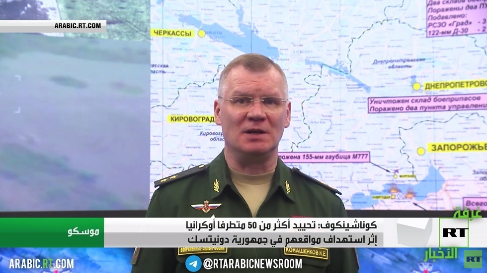 أعلنت وزارة الدفاع الروسية تحييد أكثر من خمسين متطرفا أوكرانيا في جمهورية دونيتسك، وتدميرَ أكثر من مئة وسبعين موقع قيادة وتمركز لقوات كييف، وست مستودعات للذخيرة والوقود.