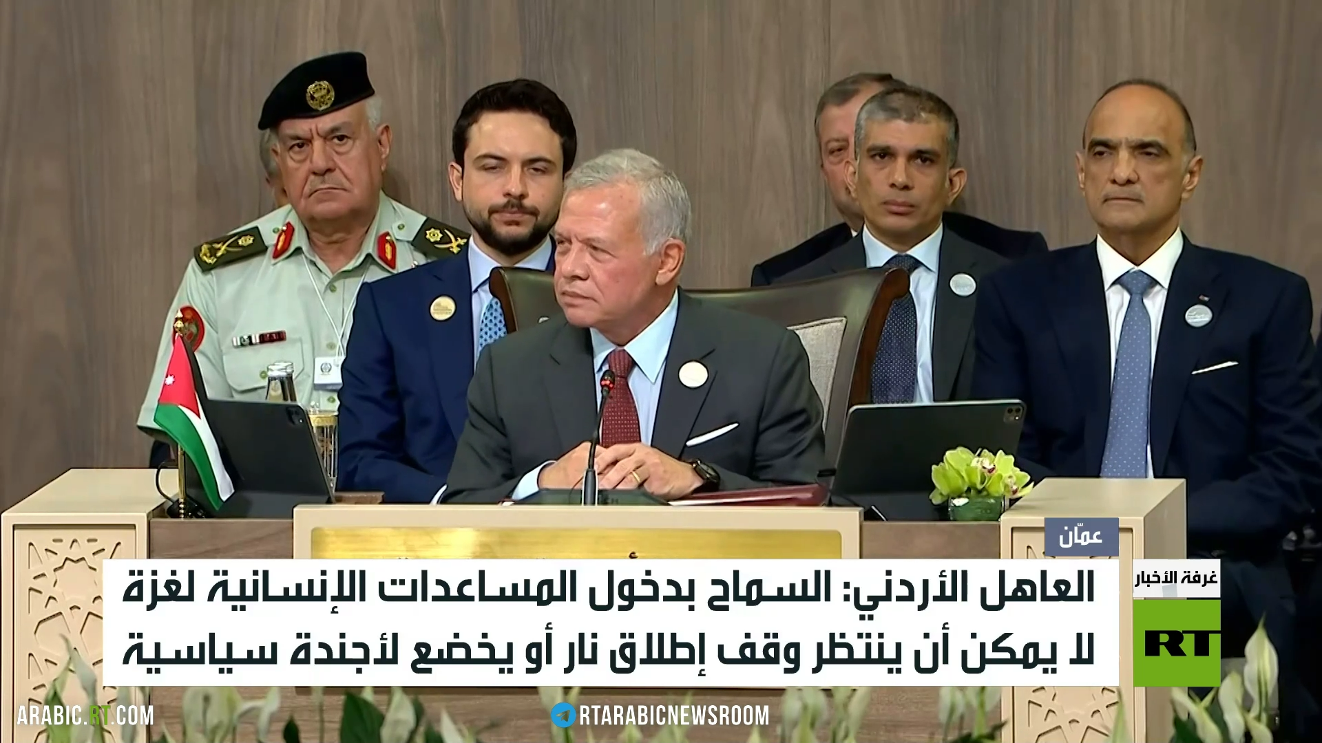 أكد الملك الأردني عبد الله الثاني خلال مؤتمر الاستجابة الإنسانية الطارئة بغزة، أن السماح بدخول المساعدات الإنسانية للقطاع لا يمكن أن ينتظر وقف إطلاق النار أو أن يخضع لأجندة سياسية
