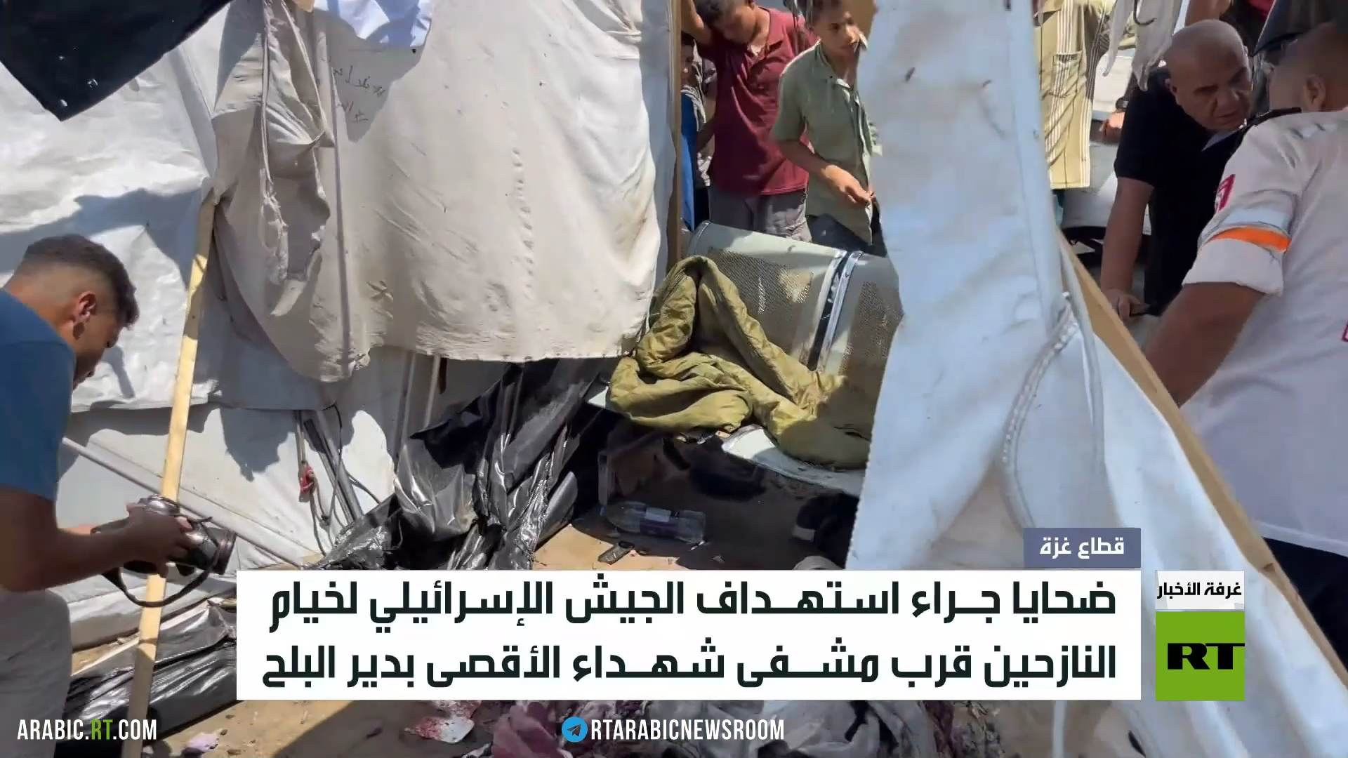 استهدفت إسرائيل مجددا خيام النازحين، ومستشفى شهداء الأقصى في دير البلح، ما أدى إلى لسقوط قتلى وجرحى، في عملية بطائرة مسيرة إسرائيلية قصفت خيمة تؤوي نازحين داخل ساحة المستشفى.