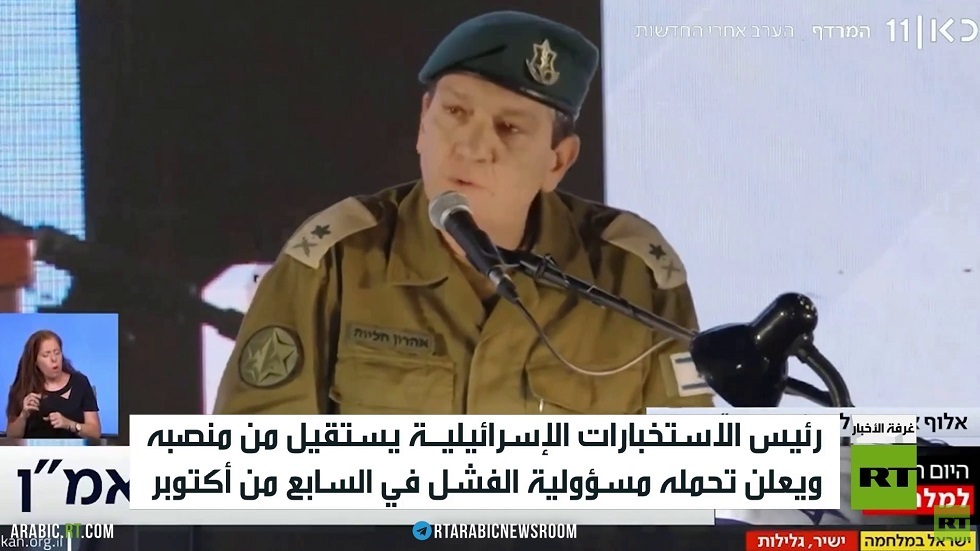 استقال /أهارون حاليوا/ رئيس شعبة الاستخبارات الإسرائيلية من منصبه، معترفًا بتحمل مسؤولية الفشل الذي وقع في السابع من أكتوبر..