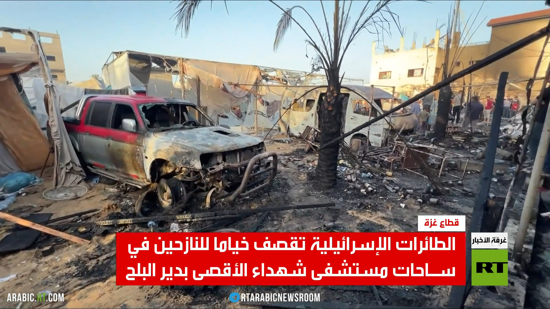 الطائرات الإسرائيلية تقصف خياما للنازحين في سـاحات مستشفى شهداء الأقصى