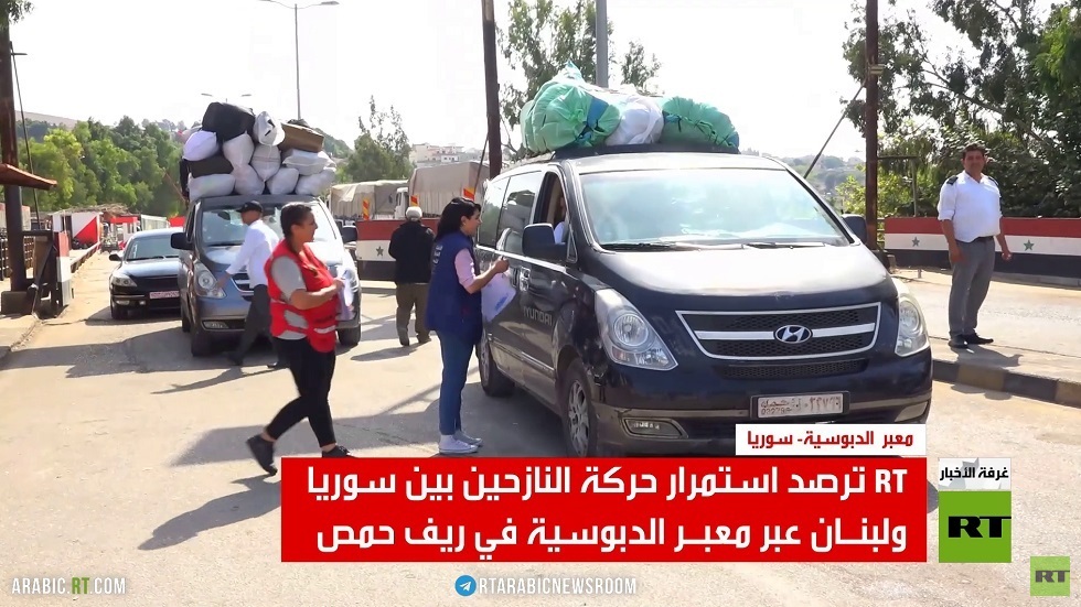 كاميرا ارتي رصدت حركة النازحين اللبنانين على معبر الدبوسية بريف حمص الذي أصبح أحد الطرق الرئيسية بعد قصف معبري مرطبا وجديدة يابوس بريف دمشق.