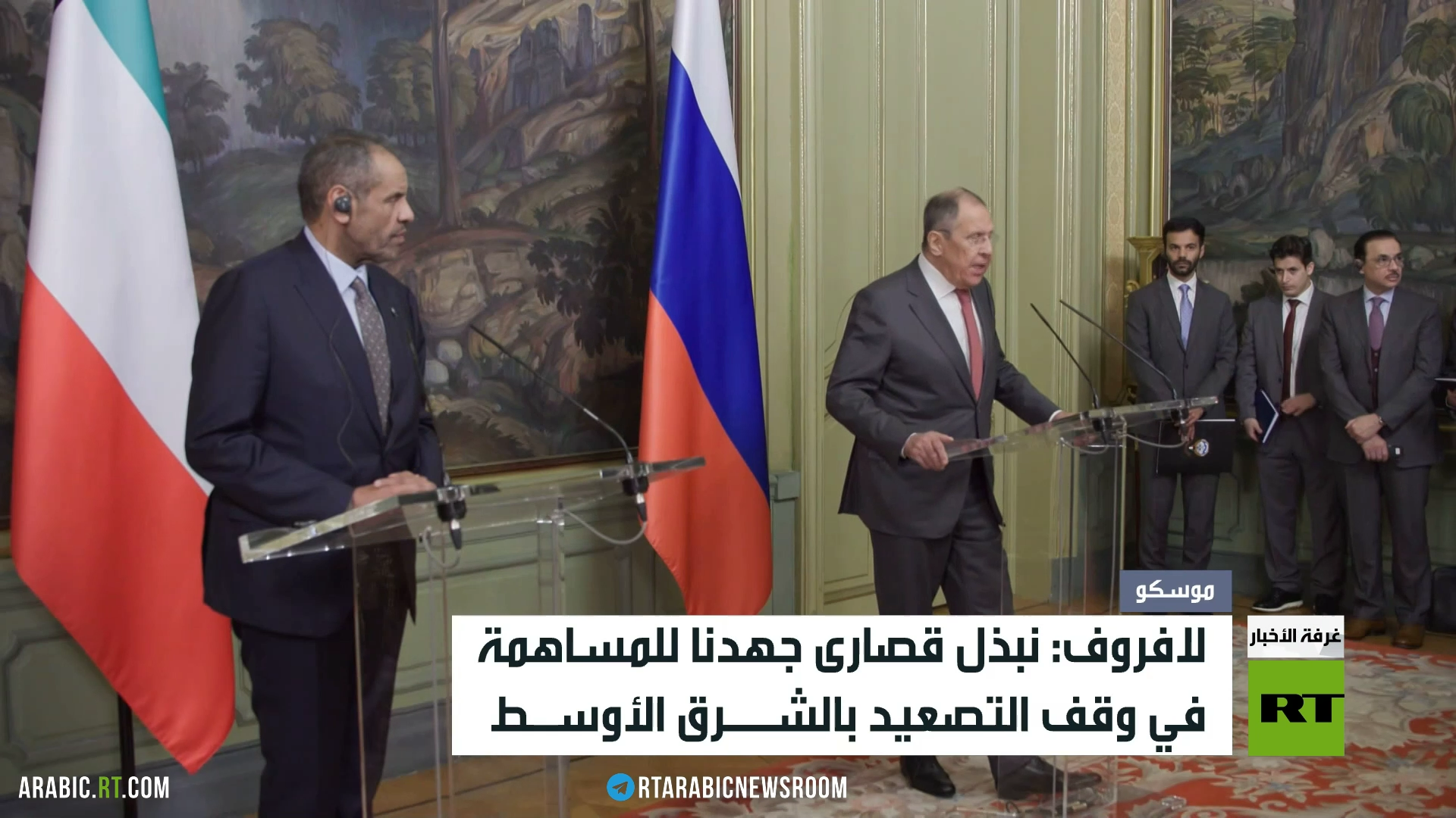 أكد وزير الخارجية الروسي سيرغي لافروف خلال مؤتمر صحفي مع نظيره الكويتي عبد الله علي اليحيا ، أن من أهم الأولويات الشرق الأوسط وقف القتال ومساعدة المدنيين وتحقيق الأمن المستدام.