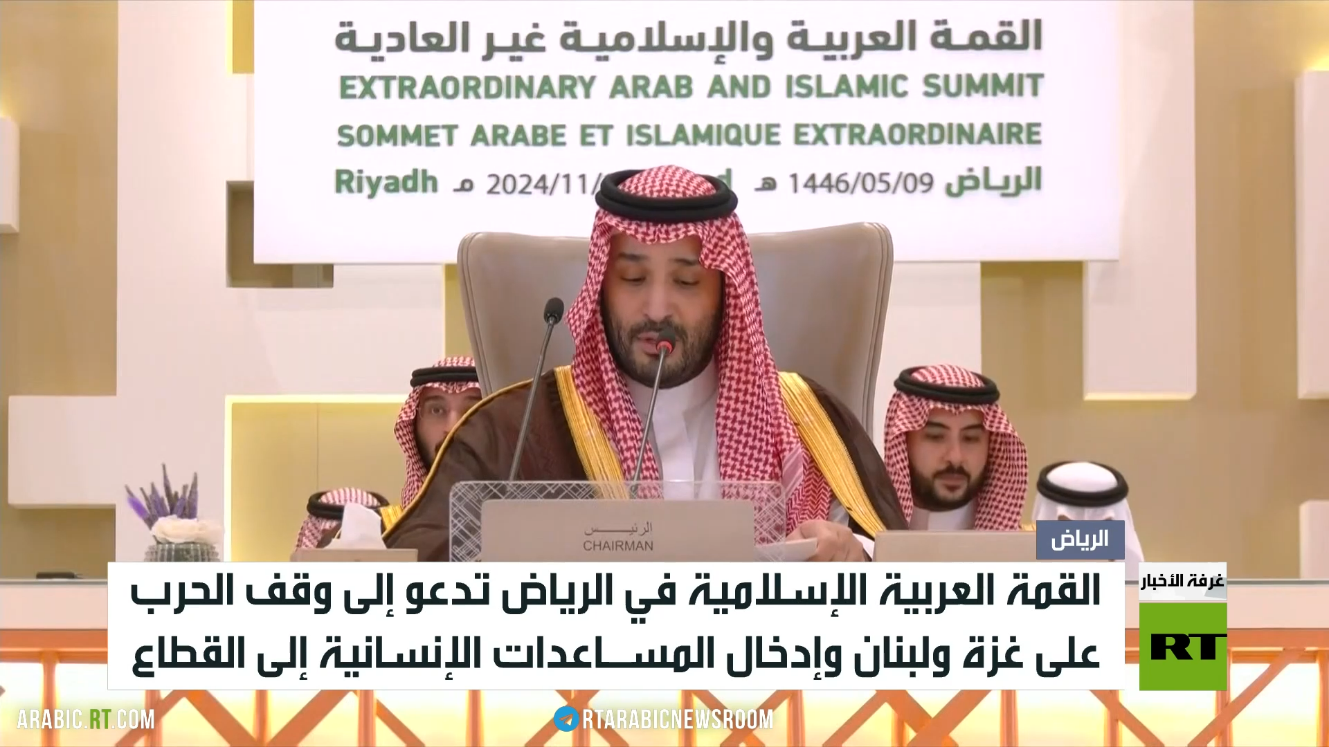 ودعا ولي العهد السعودي محمد بن سلمان في افتتاح القمة، إلى وقف فوري لإطلاق النار في غزة ولبنان وإلزام تل أبيب باحترام سيادة إيران.