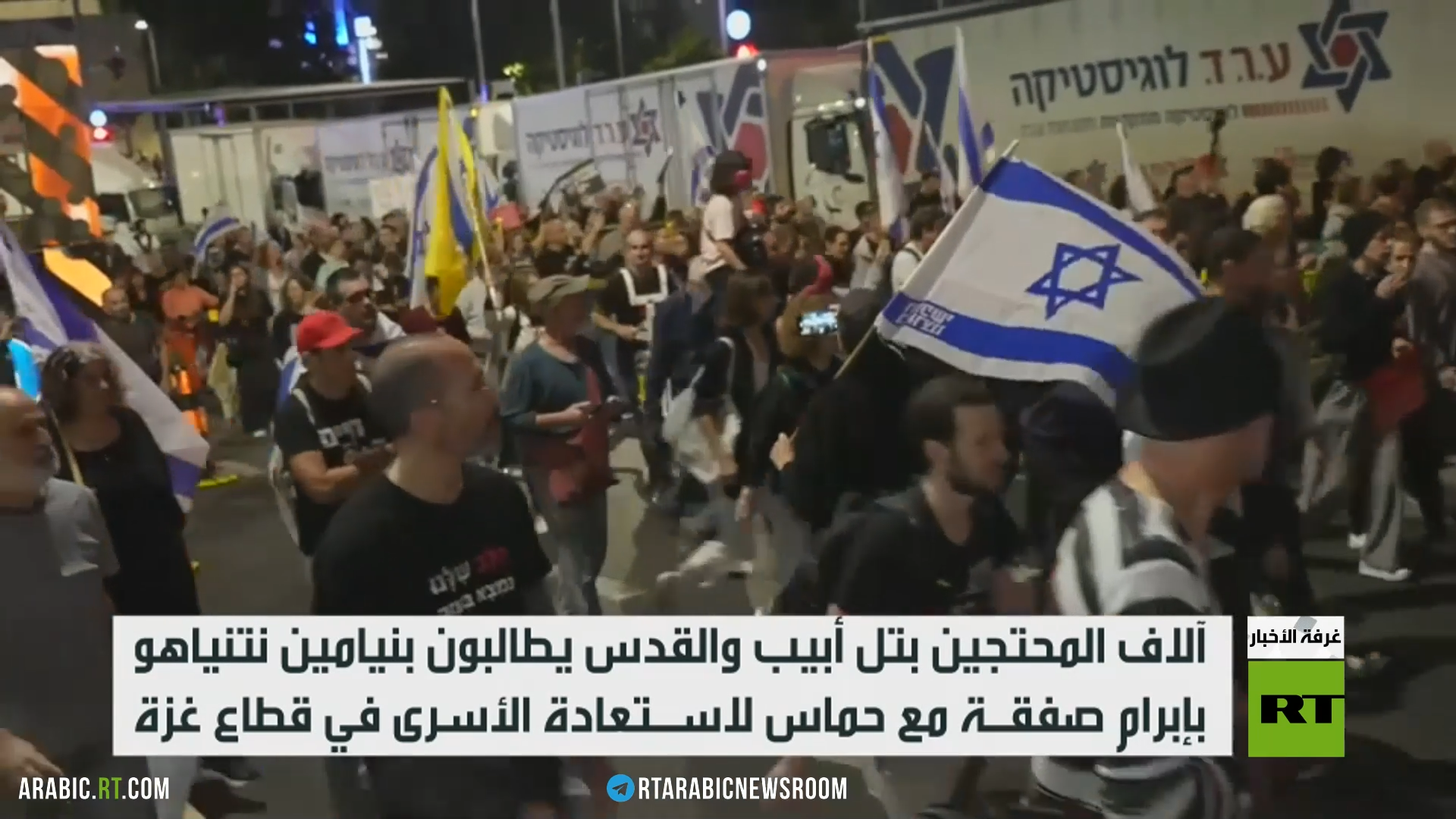 تظاهر آلاف الإسرائيليين في القدس وتل أبيب لمطالبة الحكومة ورئيسها بنيامين نتنياهو، بالتوصل لصفقة مع حماس لاستعادة المحتجزين.