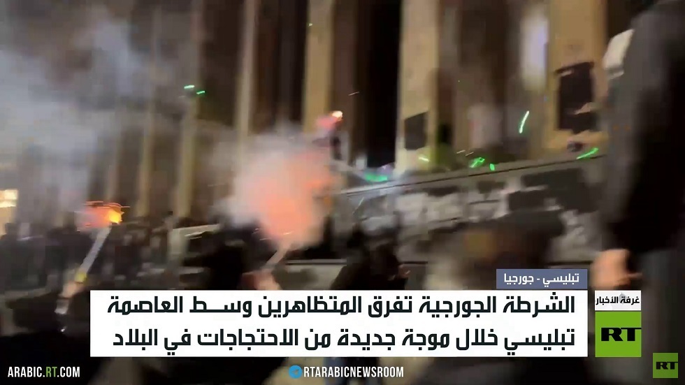 إلى ذلك استخدمت الشرطة الجورجية الغاز المسيل للدموع وخراطيم المياه لتفريق المتظاهرين بعد أن نظمت المعارضة احتجاجات جديدة أمام مبنى البرلمان في العاصمة تبيليسي، فيما دعت وزارة الداخلية المحتجين للالتزام بالقانون وتَجنُبِ أعمال الشغب. يأتي ذلك بعد إصابة مئةٍ وثلاثة عشر شرطيا في الاحتجاجات الأخيرة، وتوقيف أكثر من مئتين وعشرين شخصا.وكانت موجة جديدة من احتجاجات المعارضة قد اندلعت في جورجيا الخميس الماضي بعد إعلان رئيس الوزراء /إيراكلي كوبا خيدزه/ قرارا بتعليق المفاوضات بشأن حصول البلاد على عضوية الاتحاد الأوروبي حتى عام ألفين وثمانية وعشرين..