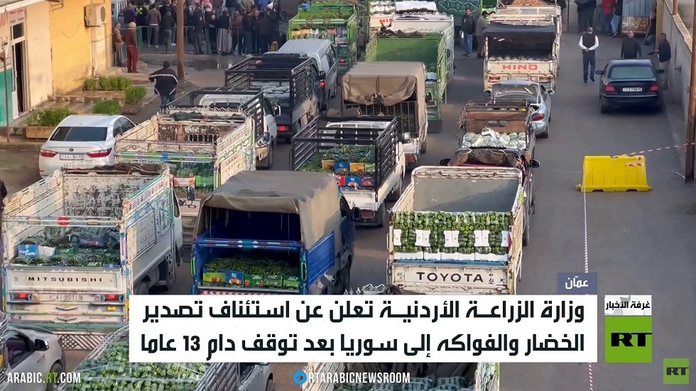أعلنت وزارة الزراعة الأردنية استئناف تصدير الخضار والفواكه إلى السوق السورية، بعد توقف دام نحو ثلاثة عشر عاما..