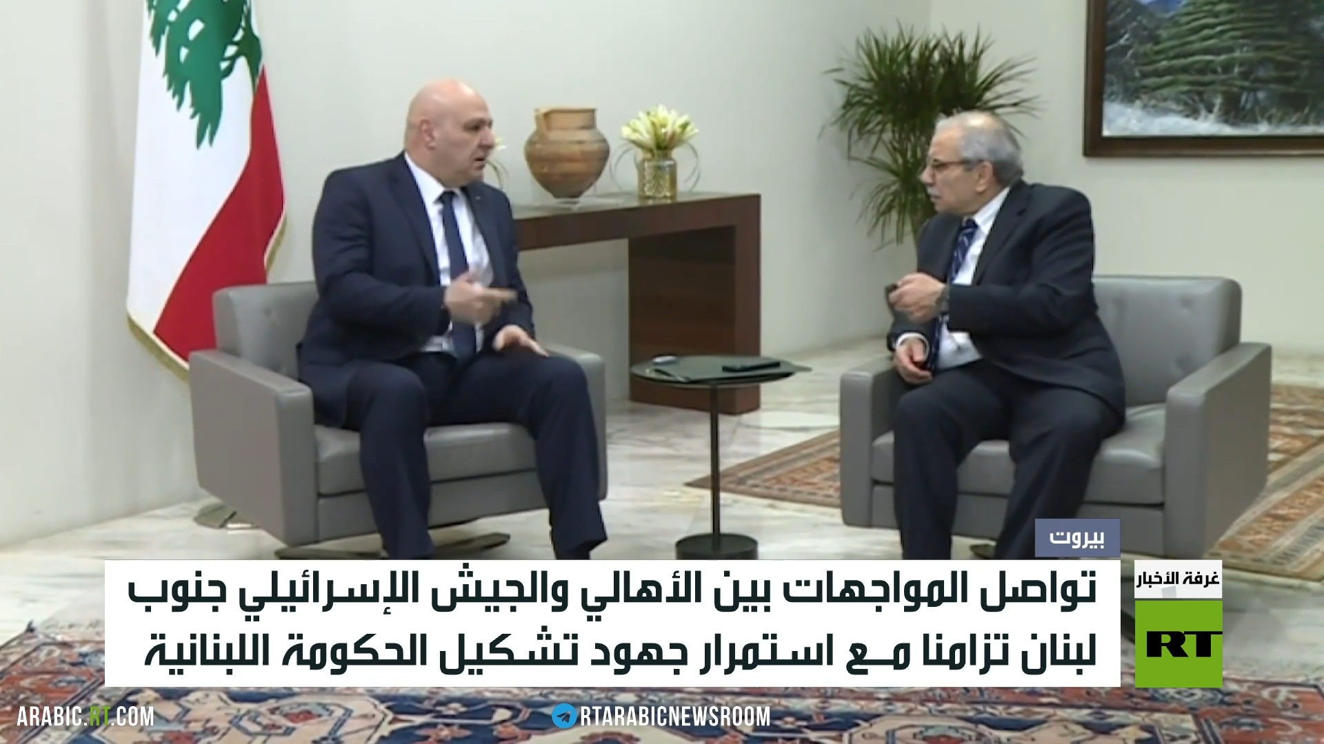 تتواصل المواجهات بين الأهالي والجيش الإسرائيلي في الجنوب اللبناني، مع إعلان تل أبيب إسقاط مسيرة استطلاع تابعة لحزب الله في الجنوب، يأتي هذا مع تواصل الجهود لتشكيل حكومة لبنانية.