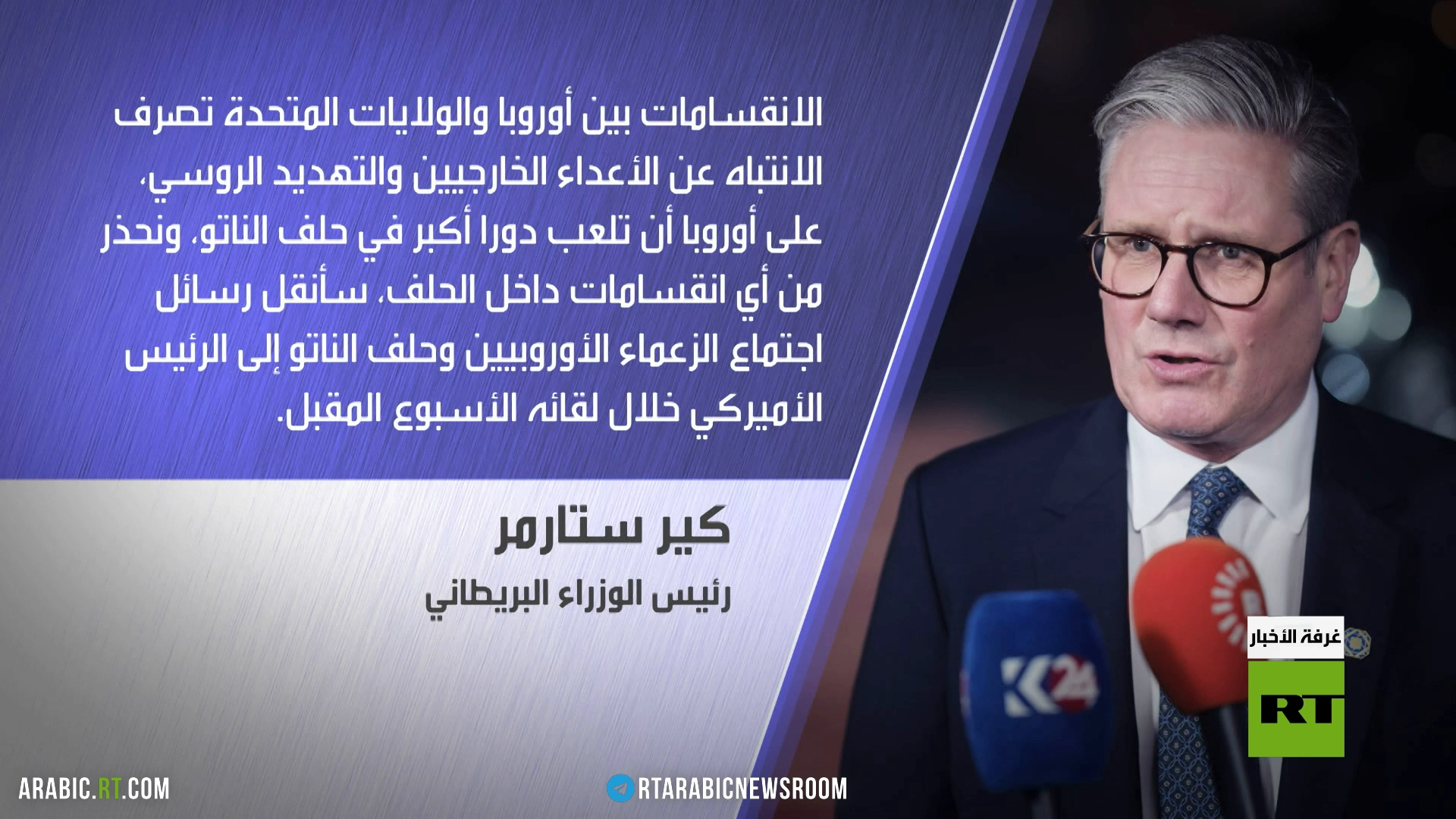 حذر رئيس الوزراء البريطاني كير ستارمر من انقسامات داخل حلف الناتو في ظل الجدل بين الولايات المتحدة ودول الاتحاد الأوروبي، بشأن النزاع الأوكراني والإنفاق العسكري.