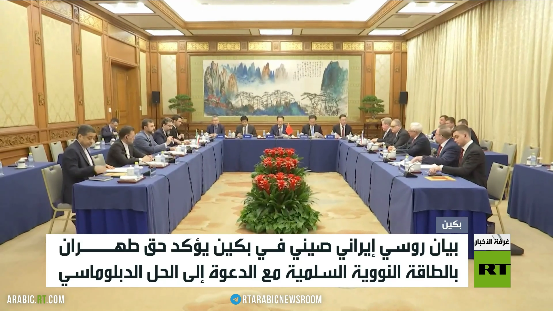أكد بيان روسي وصيني وإيراني ضرورة الاحترام الكامل لحق طهران بالاستخدام السلمي للطاقة النووية.