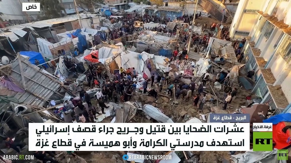 سقط العشرات من الفلسطينيين ما بين قتيل وجريح، جراء غارات إسرائيلية استهدفت النازحين بمدرستي الكرامة بحي التفاح في غزة وأبو هميسة في منطقة البريج وسط القطاع.