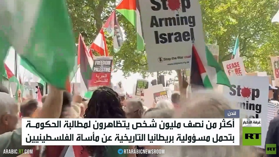 خرج في العاصمة البريطانية لندن أكثر من نصف مليون متظاهر تضامنا مع الفلسطينيين في ذكرى النكبة..