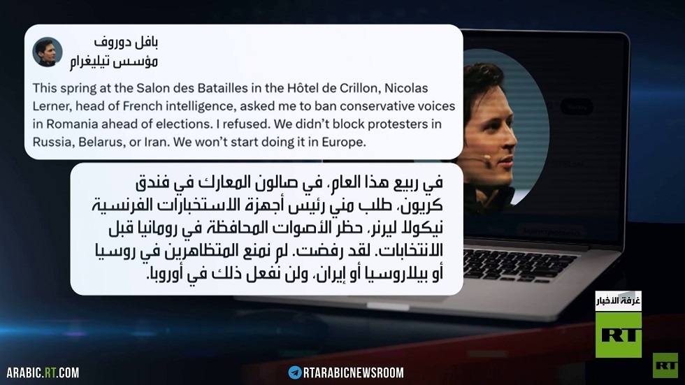 نفت الخارجية الفرنسية الاتهامات الموجهة إلى باريس بالتدخل في الانتخابات الرئاسية الرومانية،إثر كشف مدير مؤسسة تيلغرام عن طلب المخابرات الفرنسية استخدام منصته للتأثير في الانتخابات