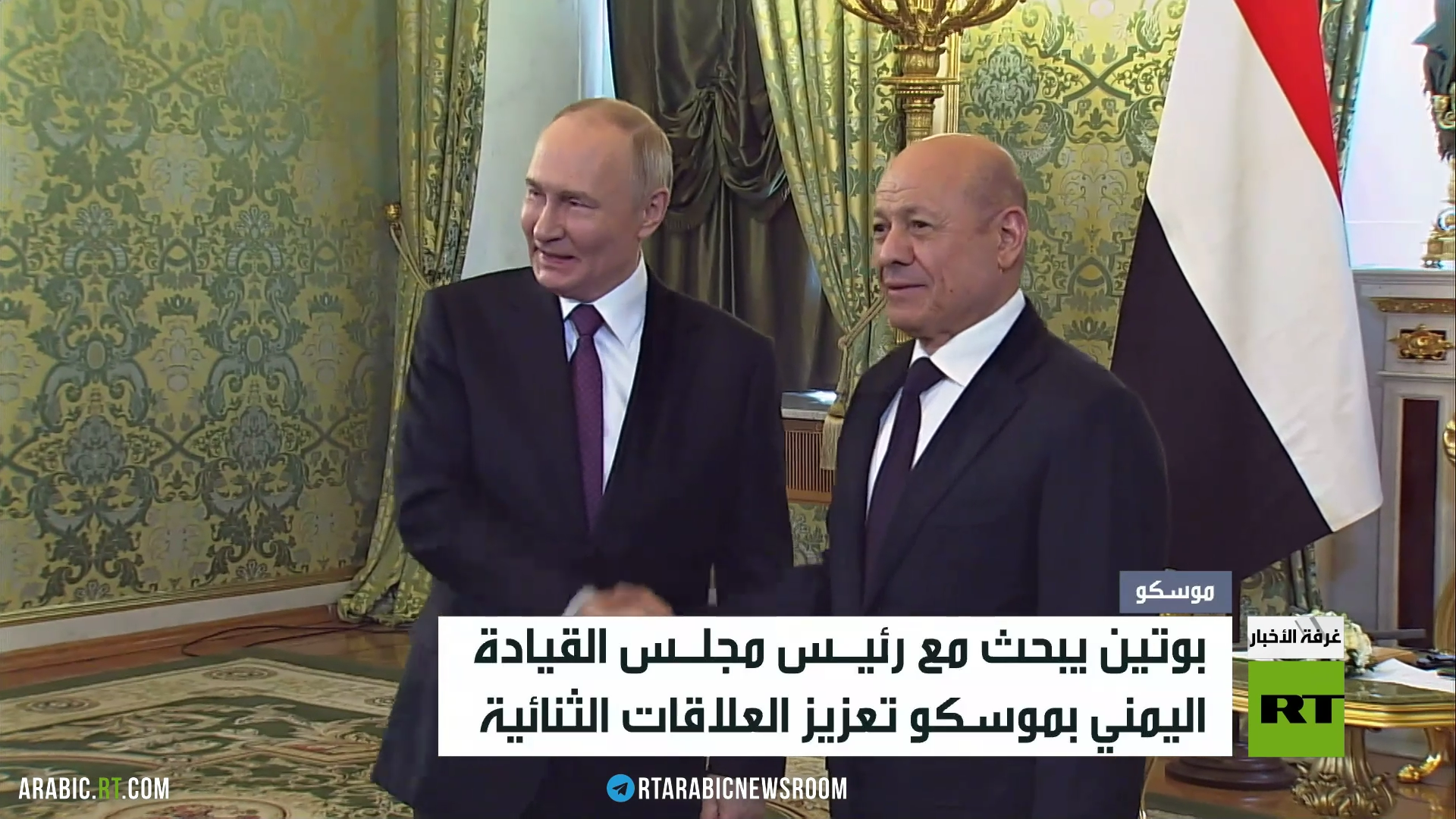 وأشار بوتين لدى استقباله في موسكو رئيس المجلس الرئاسي اليمني رشاد العليمي إن علاقات البلدين التجارية تتطور بنجاح.