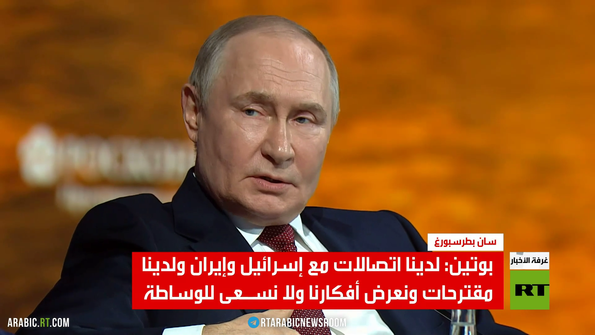 وقال بوتين إن موسكو تفي بتعهداتها وتدافع عن حق طهران بتطوير الطاقة النووية السلمية، مشددا على أن موقف روسيا واضح ويتطابق مع مصالح إيران وإسرائيل.