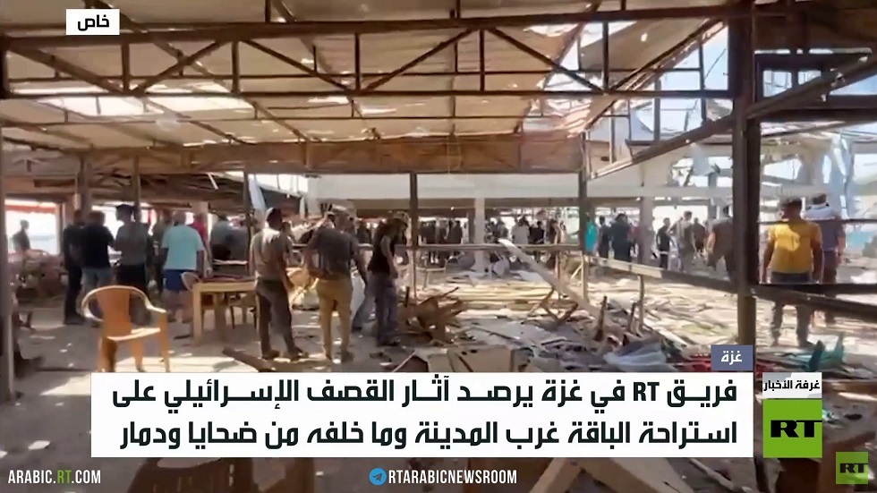 فريق آرتي رصد مجزرة استراحة الباقة غرب غزة باستهداف مباشر راح ضحيتَه العشراتُ بين قتيل وجريح.