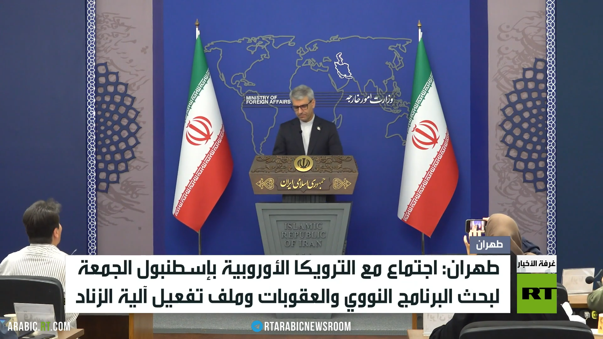 كما أعلنت الخارجية أن طهران ستستضيف الثلاثاء اجتماعا تشارك فيه كل من موسكو وبكين لمناقشة التهديد الأوروبي بتفعيل آلية الزناد.