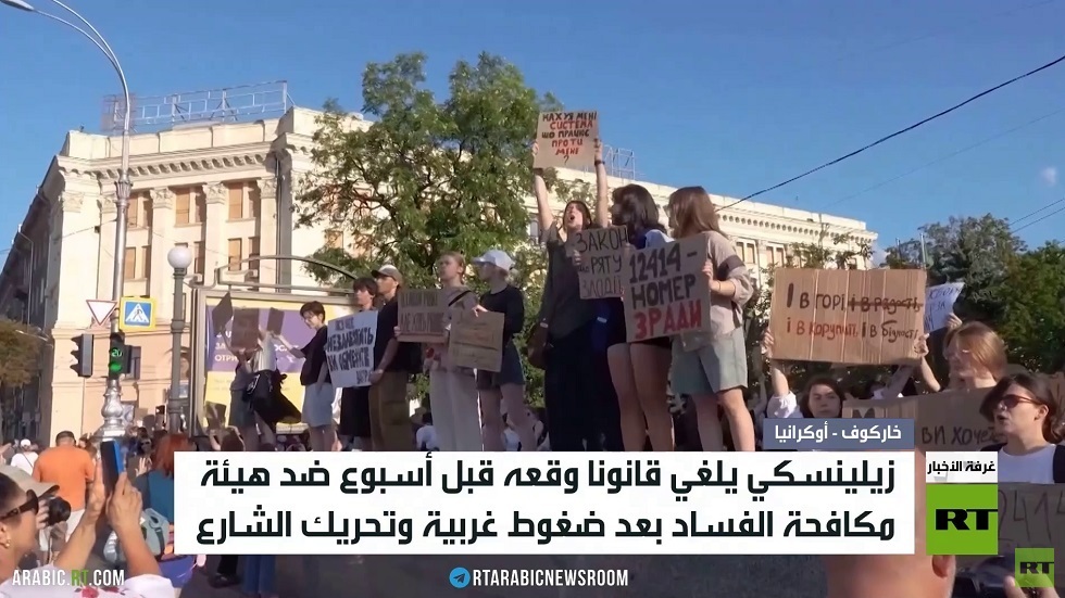 يعيد البرلمان الأوكراني النظر نهاية الشهر الحالي في مشروع قرار قدمه زيلينسكي لإلغاء القانون الذي وقعه الأسبوع الماضي حول وضع هيئة مكافحة الفساد تحت سيطرته..