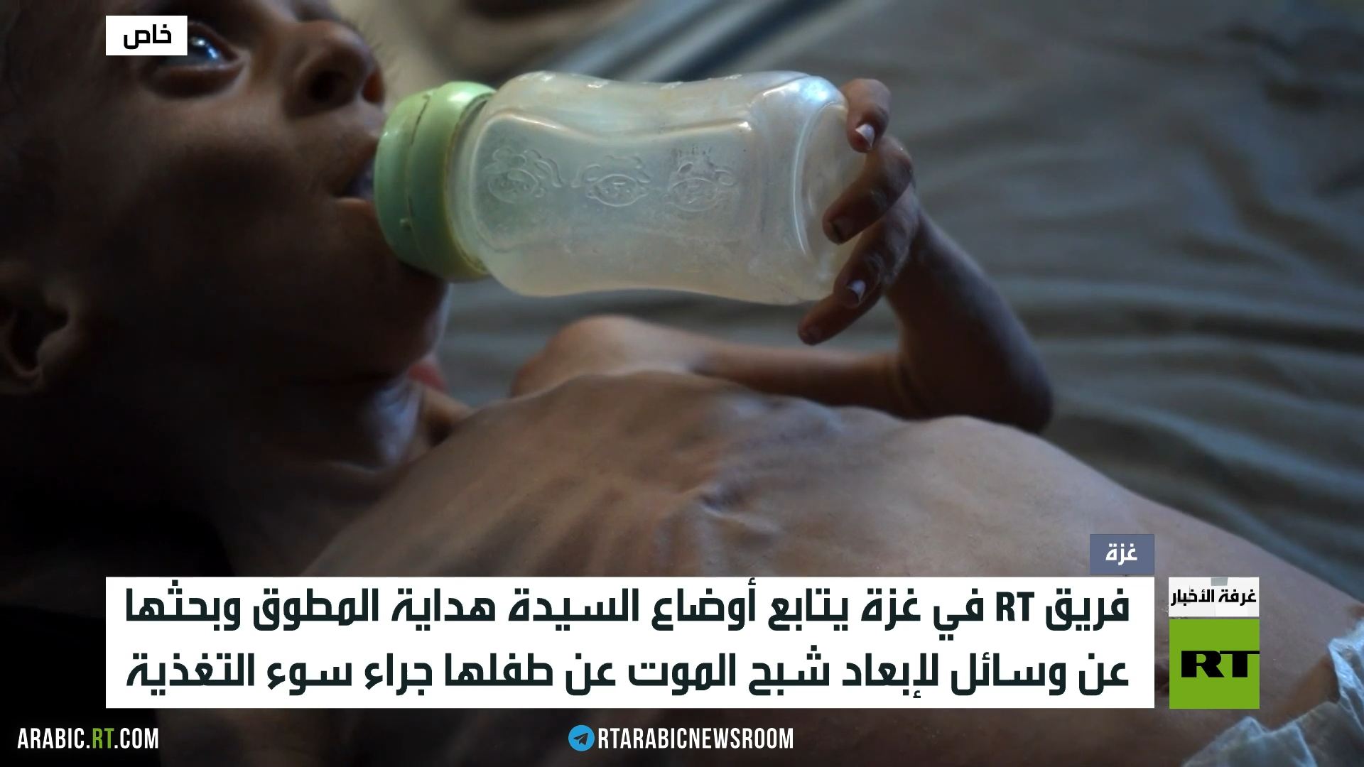 فريق آرتي تابع أوضاع السيدة هداية التي يعاني ابنها من سوء التغذية الحاد ونقص بالأكسجين جراء المجاعة المفروضة على القطاع وأهله.