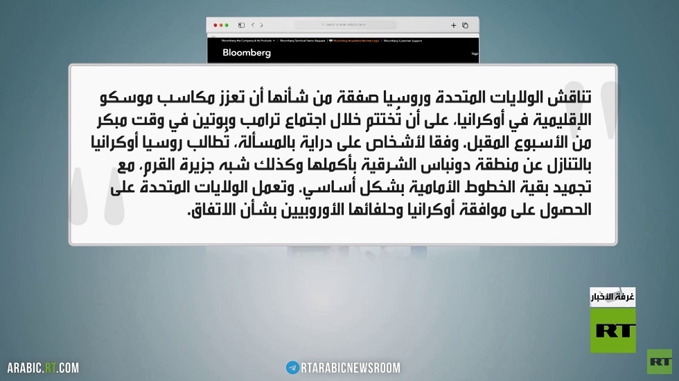 وأضاف ترامب أن اتفاق التسوية الأوكرانية سيتضمن تبادل أراض دون الكشف عن مزيد من التفاصيل.. فيما نقلت صحيفة /وول ستريت جورلنال/ أن الرئيس الروسي قدم لواشنطن خطة للتسوية الأوكرانية تتضمن تنازلات في الأراضي من قبل كييف..