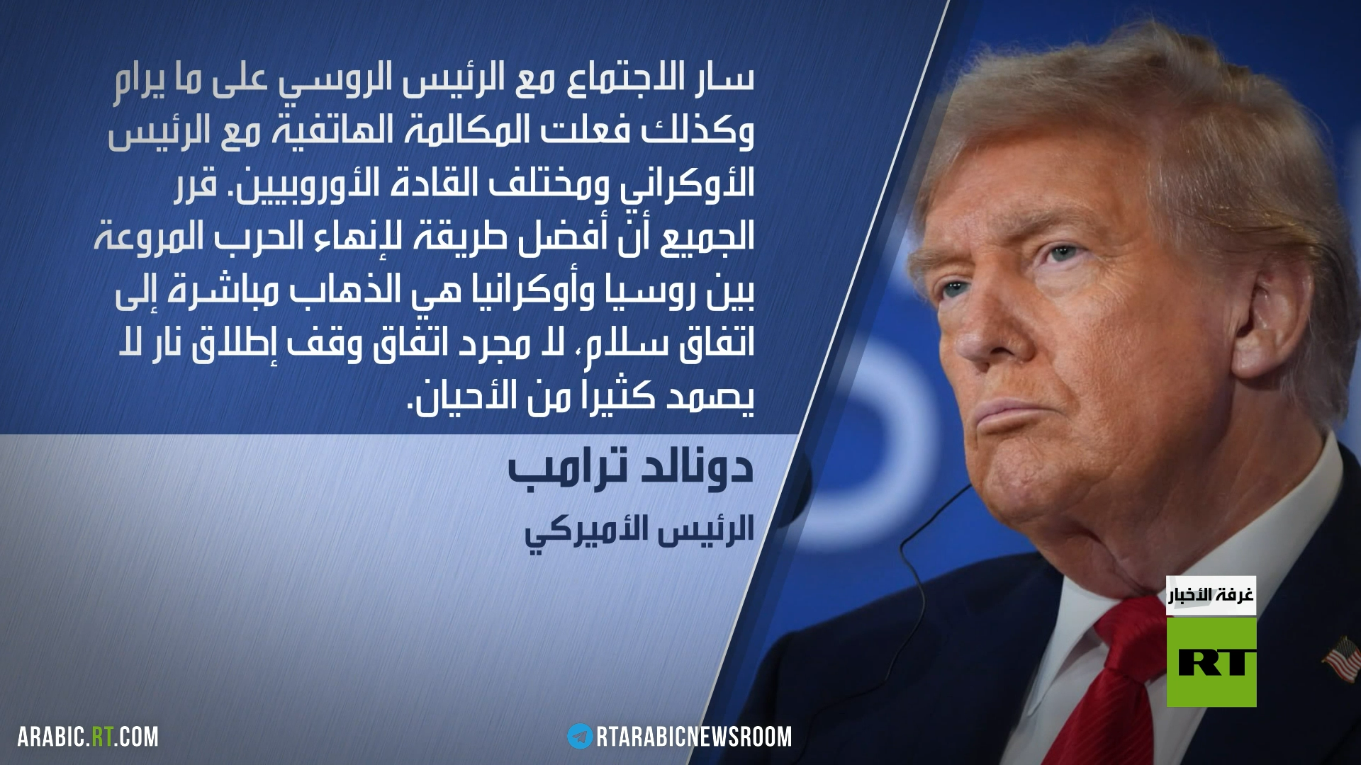 كشف الرئيس الأمريكي دونالد ترامب، عن وجود توافق على أن أفضل وسيلة لإنهاء الصراع في أوكرانيا، هي اتفاقية سلام شاملة تنهي الحرب، وليس مجرد اتفاق مؤقت لوقف إطلاق النار.