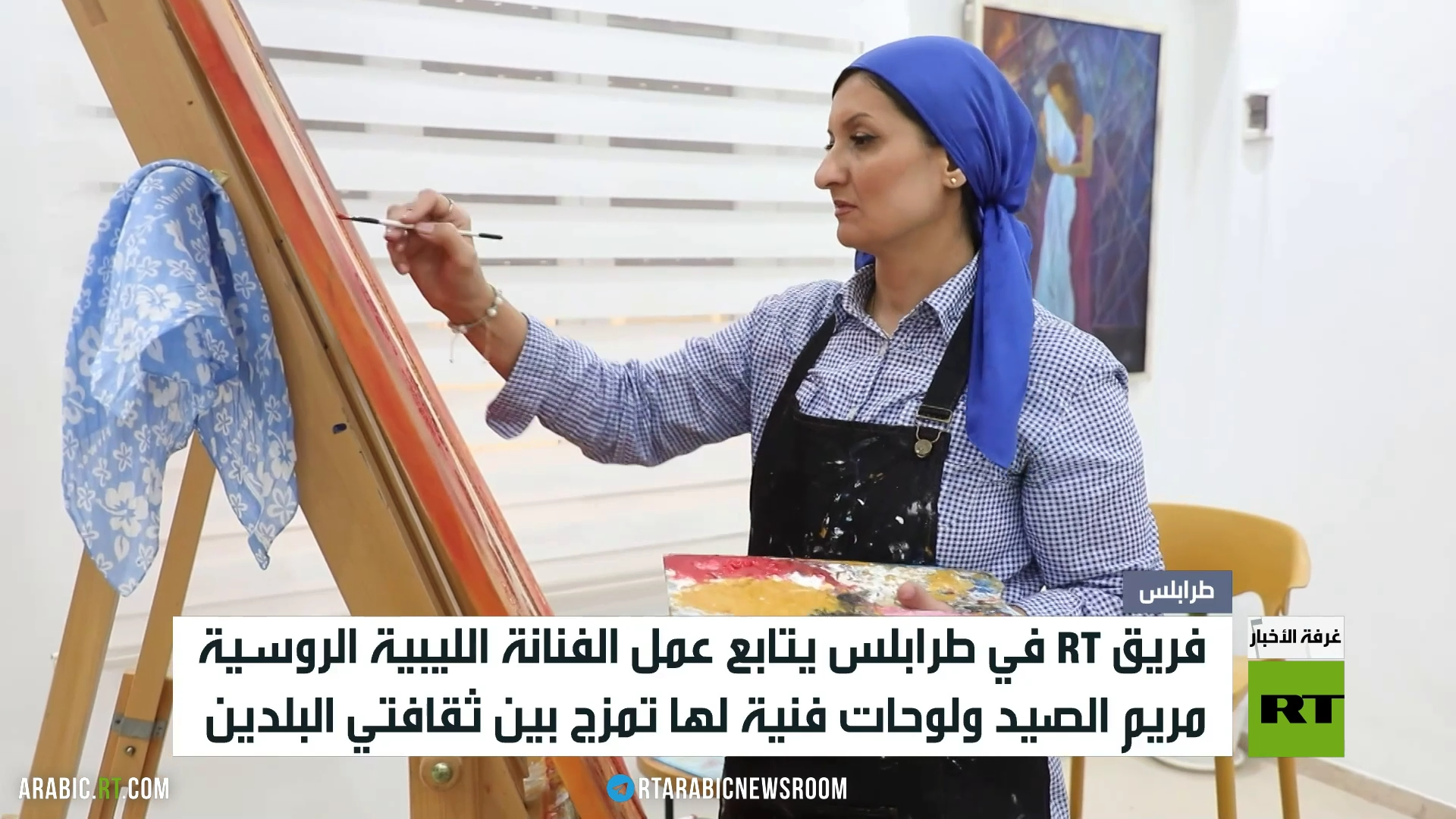 تابع فريق آرتي في طرابلس أعمال الفنانة التشكيلية الليبية الروسية مريم الصيد، وجمعها في اللوحات بين دفء الصحراء الليبية وإرث الطبيعة الروسية،