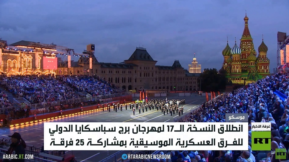 انطلقت في موسكو بالساحة الحمراء فعاليات النسخة السابعة عشرة من مهرجان /برج سباسكايا/ السنوي الدولي للفرق العسكرية الموسيقية والمستمر حتى نهاية أغسطس الجاري.