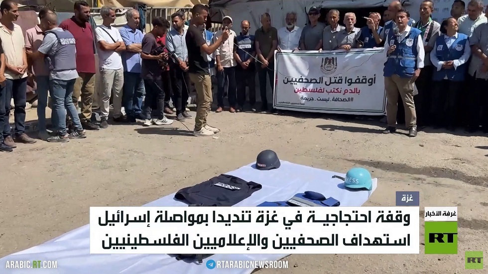 شهدت غزة وقفة تضامنية منددة باستمرار استهداف إسرائيل للصحفيين بعد يوم من قتل الجيش الاسرائيلي ستة منهم خلال توثيقهم استهداف مستشفى ناصر في خان يونس جنوب القطاع..