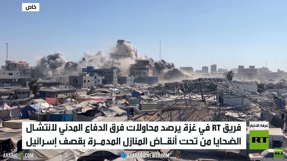 تابع فريق آرتي في غزة محاولات فرق الدفاع المدني انتشال الضحايا من تحت ركام المنازل المدمرة بالقصف الإسرائيلي، لكن الإمكانات المتواضعة تمنع انتشال العديد من المصابين من تحت الأنقاض.