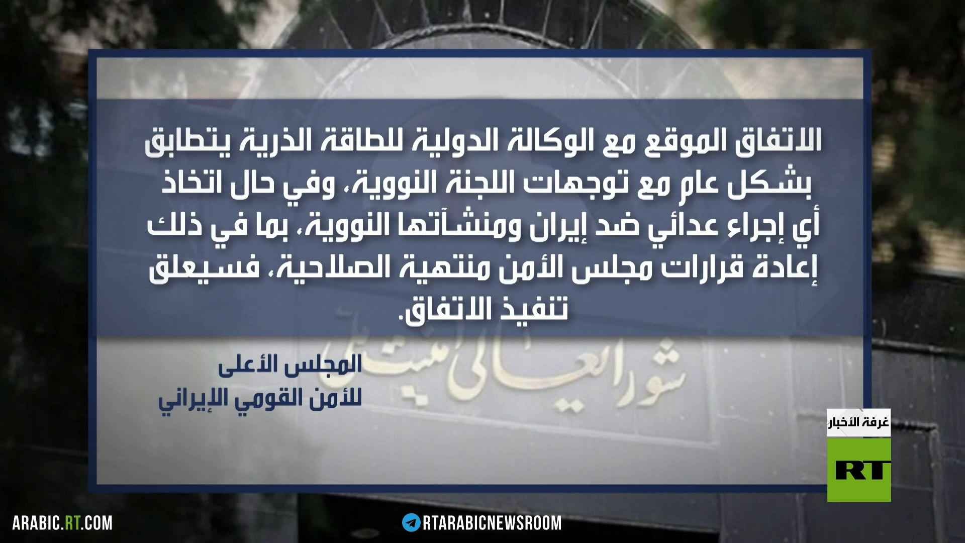 وأوضح المجلس أن الاتفاق سيكون بحكم الملغى حال تكرار الاعتداء على إيران أو إعادة فرض العقوبات الأممية.