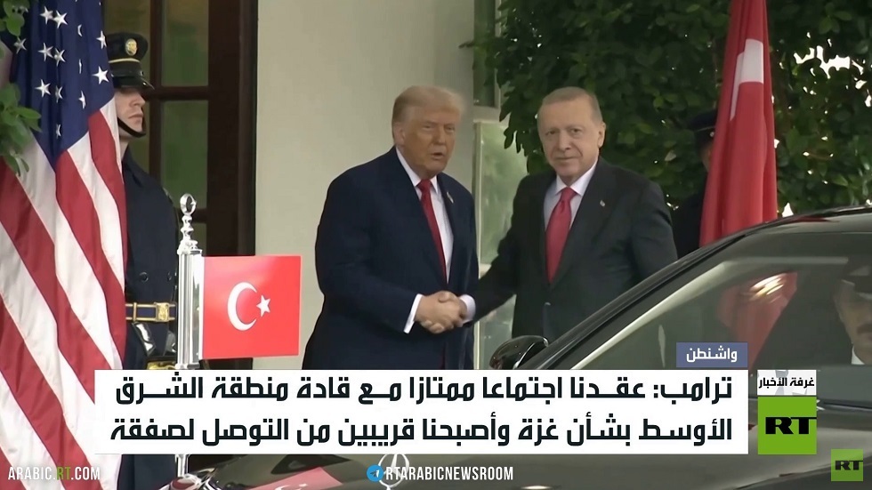 أعرب ترامب خلال استقباله نظيره التركي رجب طيب أردوغان في المكتب البيضاوي عن اعتقاده بإمكانية التوصل إلى اتفاق لإنهاء الحرب في قطاع غزة قريبا.