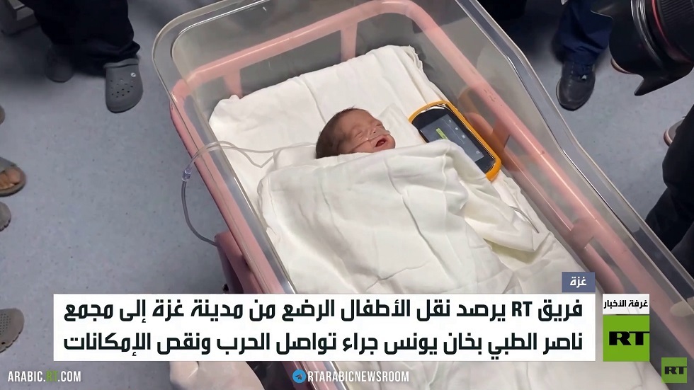 RT ترصد نقل أطفال رضّع من غزة لخان يونس