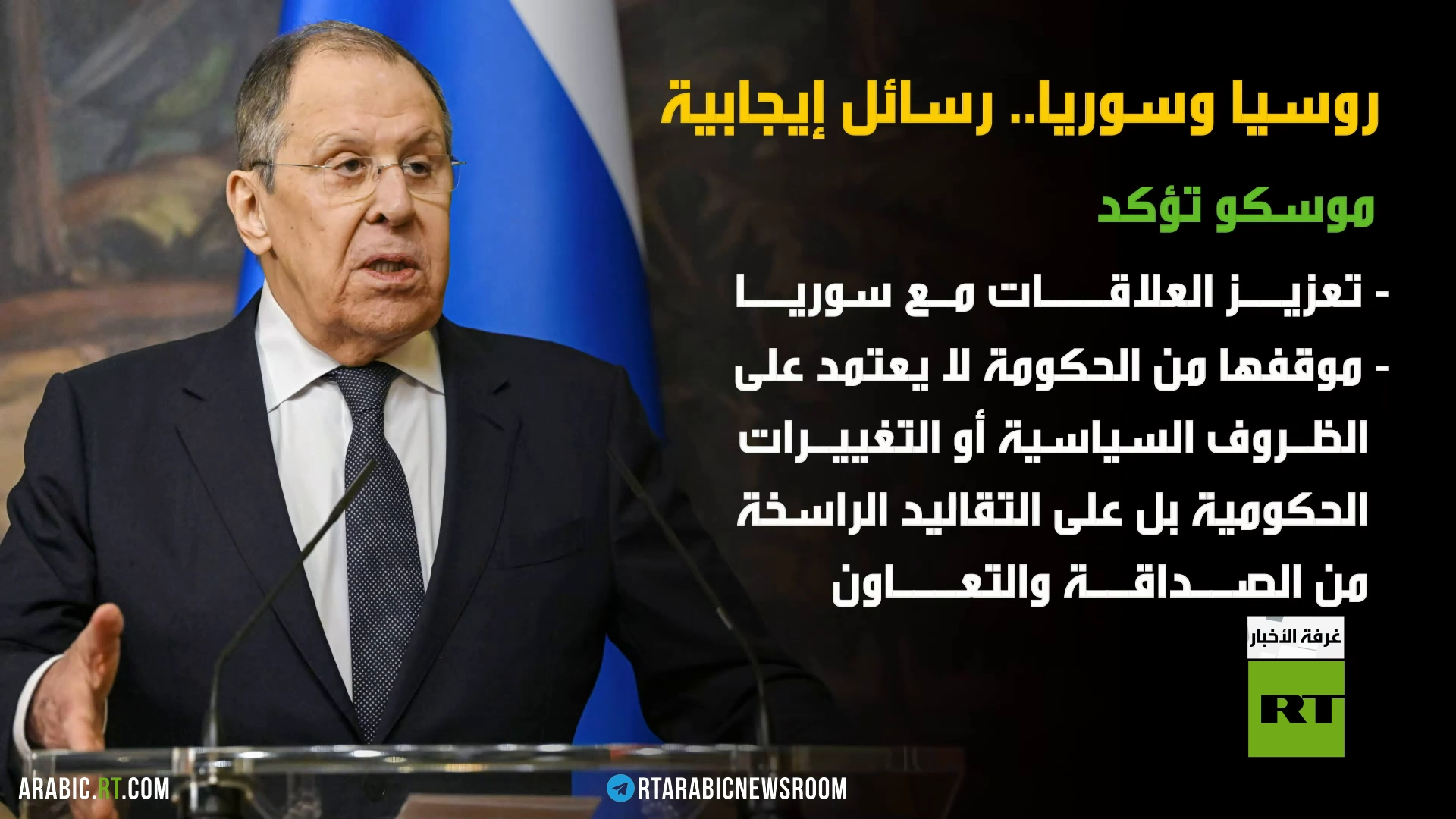 صرح وزير الخارجية الروسي سيرغي لافروف، بأن وزارة الخارجية الروسية بذلت جهودا مكثفة لبناء التعاون مع السلطات السورية الجديدة.
