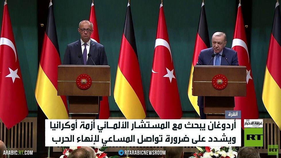 شدد الرئيس التركي رجب طيب أردوغان، خلال مؤتمر صحفي مشترك مع المستشار الألماني فريدريش ميرتس، على ضرورة تواصل المساعي الدبلوماسية الرامية لإنهاء الأزمة الأوكرانية بشكل دائم وعادل.