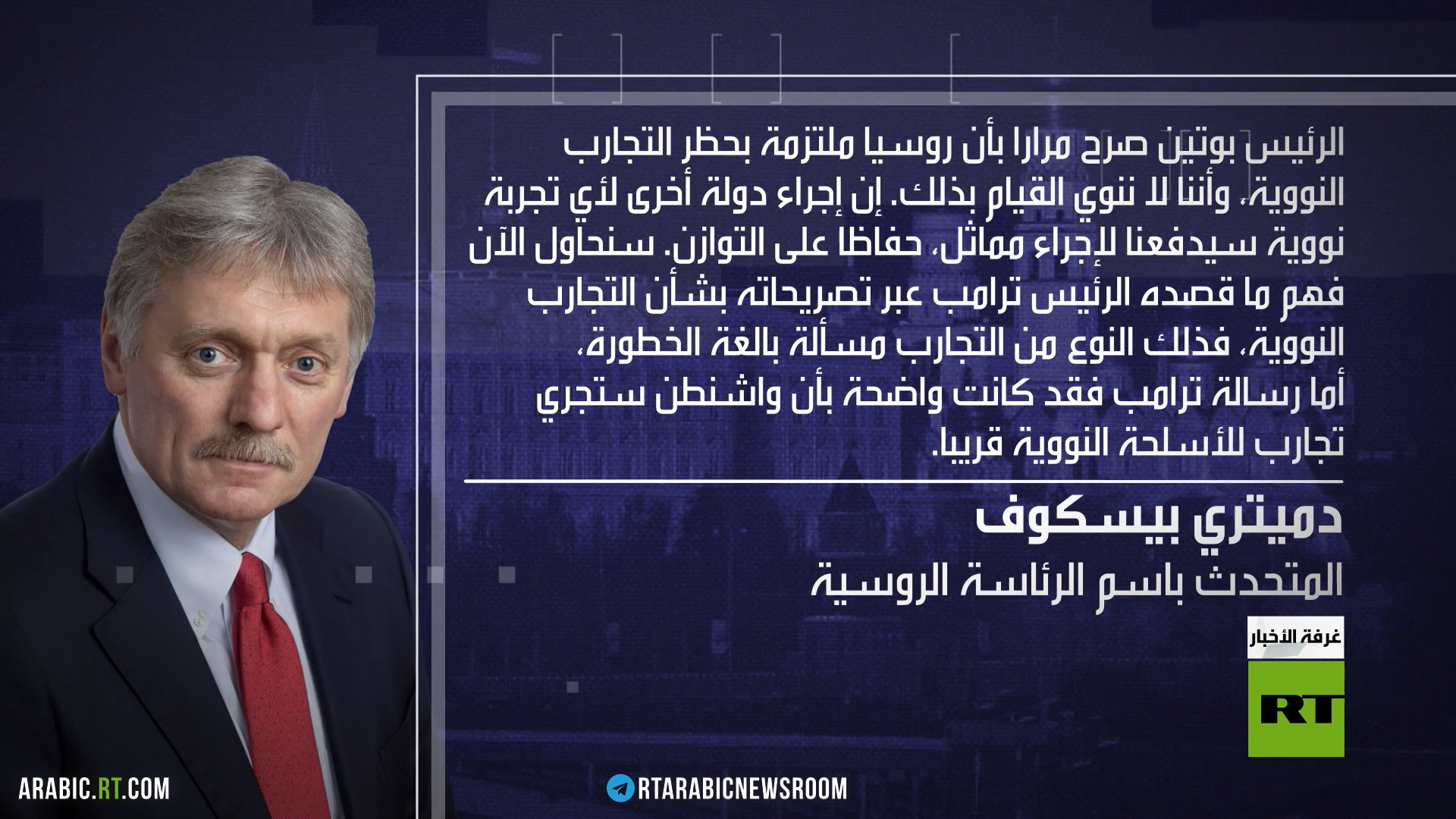 شدد المتحدث باسم الرئاسة الروسية دميتري بيسكوف على التزام موسكو بمعاهدة حظر التجارب النووية .