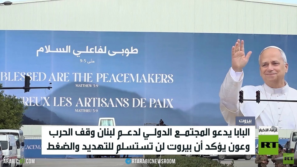 قال بابا الفاتيكان لاون الرابع عشر في كلمة له من مرفأ بيروت إن لبنان يريد السلام، ودعا البابا المجتمع الدولي للوقوف مع بيروت ووقف آلة الحرب..