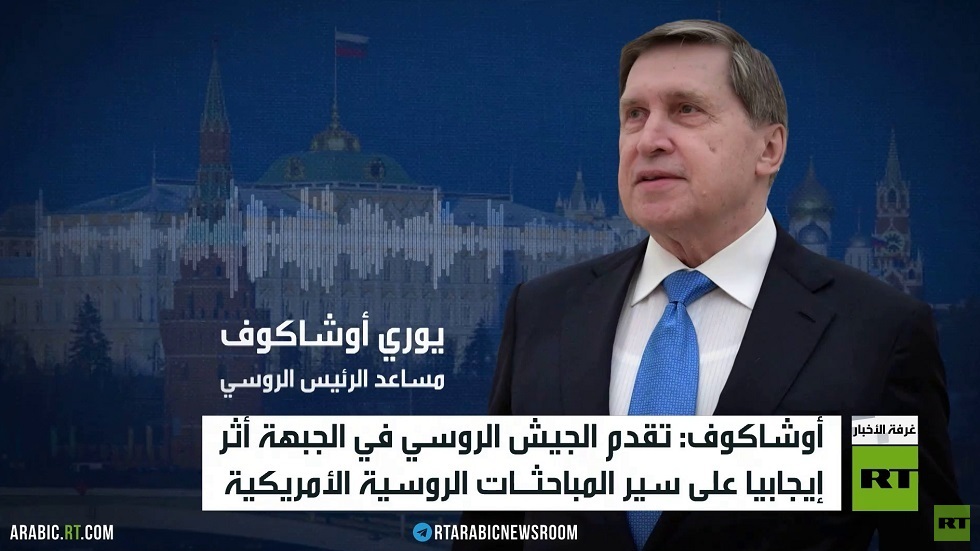 قال مساعد الرئيس الروسي /يوري أوشاكوف/ إن تقدم الجيش الروسي في الجبهة كان له أثر إيجابي على سير المباحثات الروسية الأمريكية..