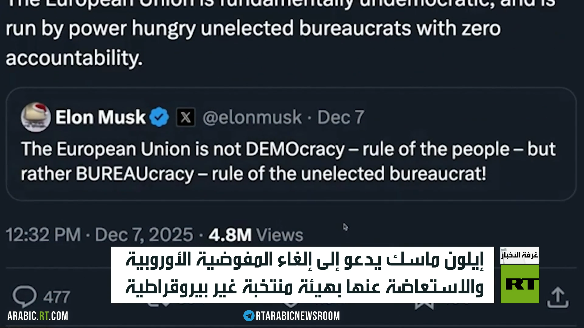 دعا رجل الأعمال الأمريكي إيلون ماسك إلى إلغاء المفوضية الأوروبية والاستعاضة عنها بهيئة منتخبة، مشيرا إلى أن النظام الحالي في الاتحاد الأوروبي تديره البيروقراطية.