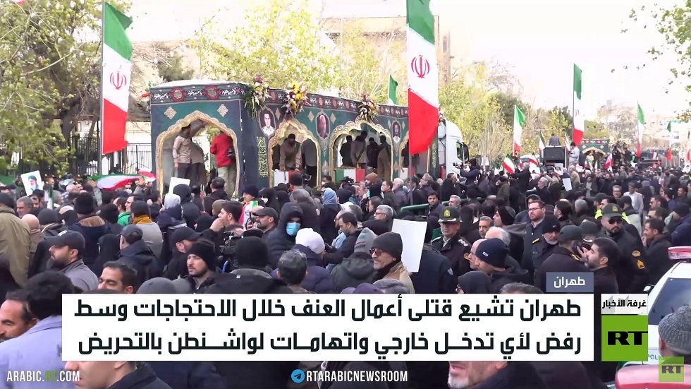 شيع الإيرانيون في العاصمة طهران قتلى أعمال العنف الأخيرة خلال الاحتجاجات، معلنين رفضهم التدخل الاجنبي..