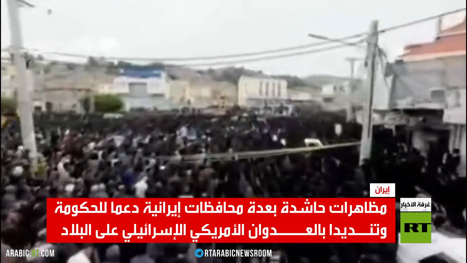 نشر الإعلام الإيراني صورا لمظاهرات حاشدة في عدة محافظات دعما للحكومة الإيرانية، وتنديدا بالعدوان الأمريكي الإسرائيلي على بلدهم..