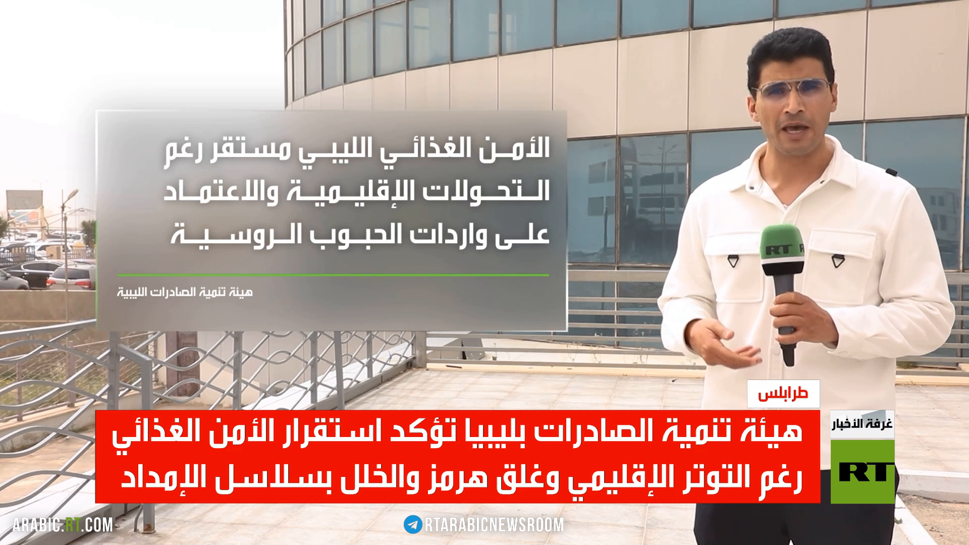 أكدت هيئة تنمية الصادرات الليبية استقرار الأمن الغذائي والدوائي رغم التوتر الإقليمي، وغلق مضيق هرمز، مع استمرار اعتماد السوق المحلية على روسيا كمصدر رئيس للقمح والحبوب.