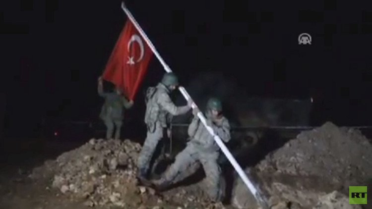تكتمل القصة ربما برفع الجيش التركي لعلمه على سارية شبه عملاقة في منطقة آشمة السورية على تخوم مدينة عين العرب.