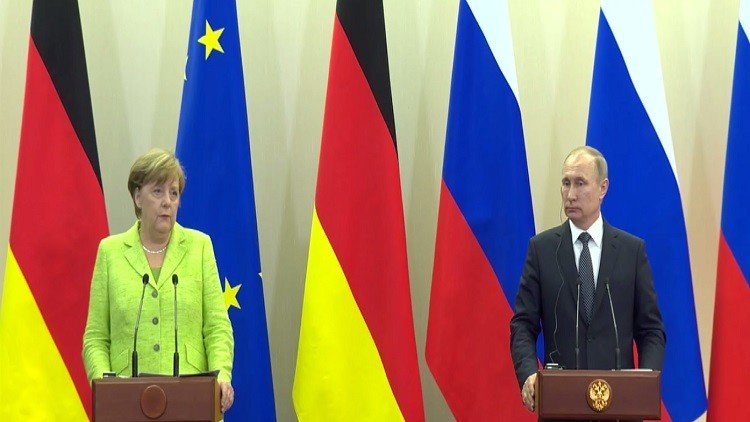 شدد الرئيس الروسي فلاديمير بوتين والمستشارة الألمانية أنجيلا ميركل خلال مؤتمر صحفي لهما في سوتشي، شددا على ضرورة تنفيذ اتفاق مينسك لحل الأزمة الأوكرانية.
